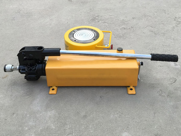 8、使用時(shí)先將手動(dòng)泵的快速接頭與頂對接,然后選好位置,將油泵上的放油螺釘旋緊,即可工作。欲使活塞桿下降,將手動(dòng)油泵手輪按逆時(shí)針方向微微旋松,油缸卸荷,活塞桿即逐漸下降。否則下降速度過快將產(chǎn)生危險(xiǎn)。