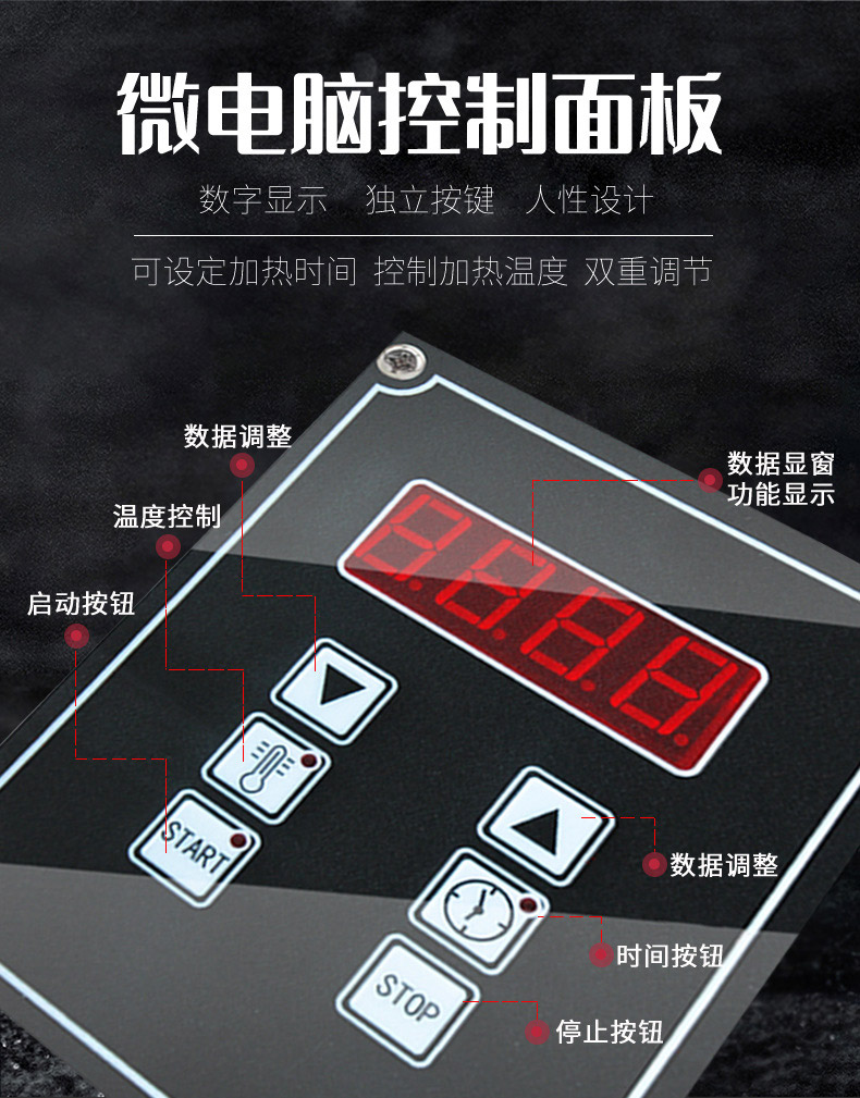 5、調(diào)節(jié)所需加熱時(shí)間,按下啟動(dòng)按鈕,加熱開始。當(dāng)工件加熱至所需時(shí)間主機(jī)將會(huì)自動(dòng)關(guān)斷電源或按一下停止開關(guān)。