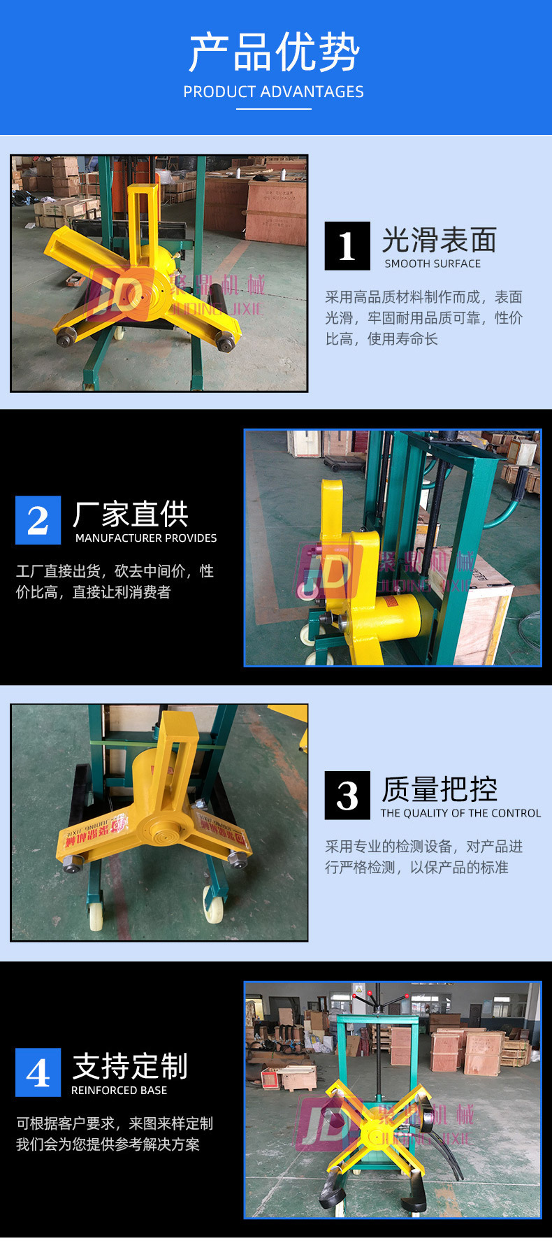 本機(jī)系參照裝卸叉車而設(shè)計(jì)的,底部為四個(gè)鋼質(zhì)萬向輪,經(jīng)久耐用。